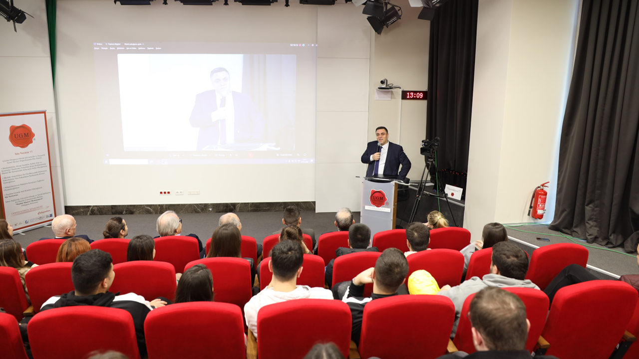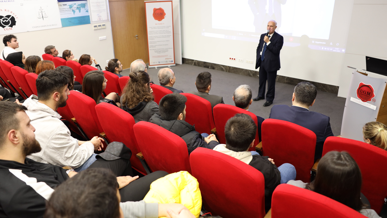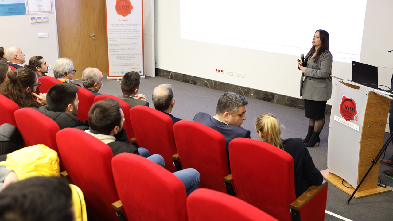 12:00 – 13:00 saat aralığında Şirket Ortağımız Sayın Yusuf Bulut Öztürk açılış konuşması ile başlayan etkinlik, UGM Genel Müdürümüz Sayın Rıza Mehmet Korkmaz’ın şirket tanıtımı, UGM Genel Müdür Baş Yardımcımız Sayın Orhan Kırali’nin mesleğin tanıtımı ve UGM İnsan Kaynakları Uzman Yardımcımız Sayın Gökçe Eraslan’ın staj imkanları konulu sunumu ile devam etti.